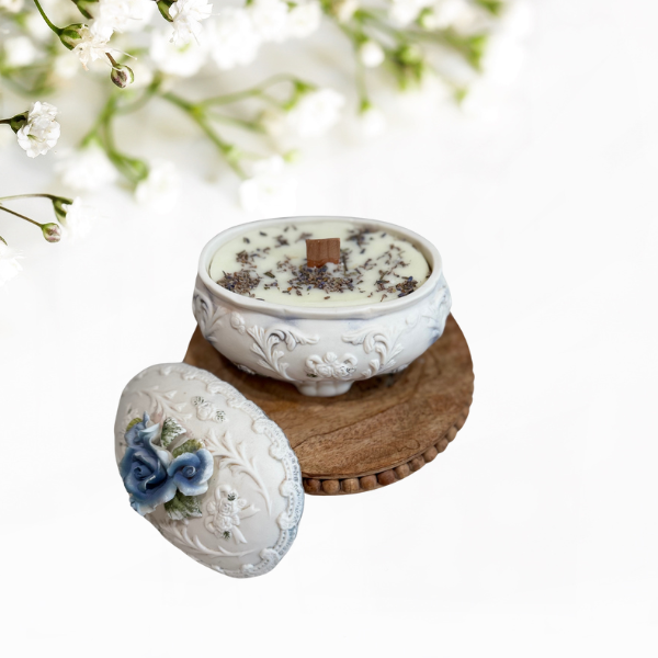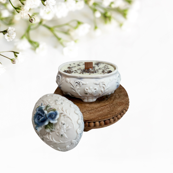 Bridgerton is a lavender scented, Victorian beauty, a first edition piece from our Vintage Burns Collection of Rescued Vessels. Made from 100% natural beeswax and lightly scented with sweet orange & vanilla essential oils and organic lavender flakes, it's one of our favorites and sure to be enjoyed and reused, by any lucky recipient.