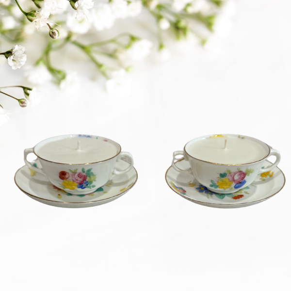 Go Ask Alice, a first edition piece from our Vintage Burns Collection of Rescued Vessels, is a staff favorite. Gold accented with a display of lovely floral colors, these tea cup and saucers are a beautiful addition to any home. Made from 100% natural beeswax and lightly scented with sweet orange & vanilla essential oils and organic lavender flakes, it's one of our favorites and sure to be enjoyed and reused, by any lucky recipient.